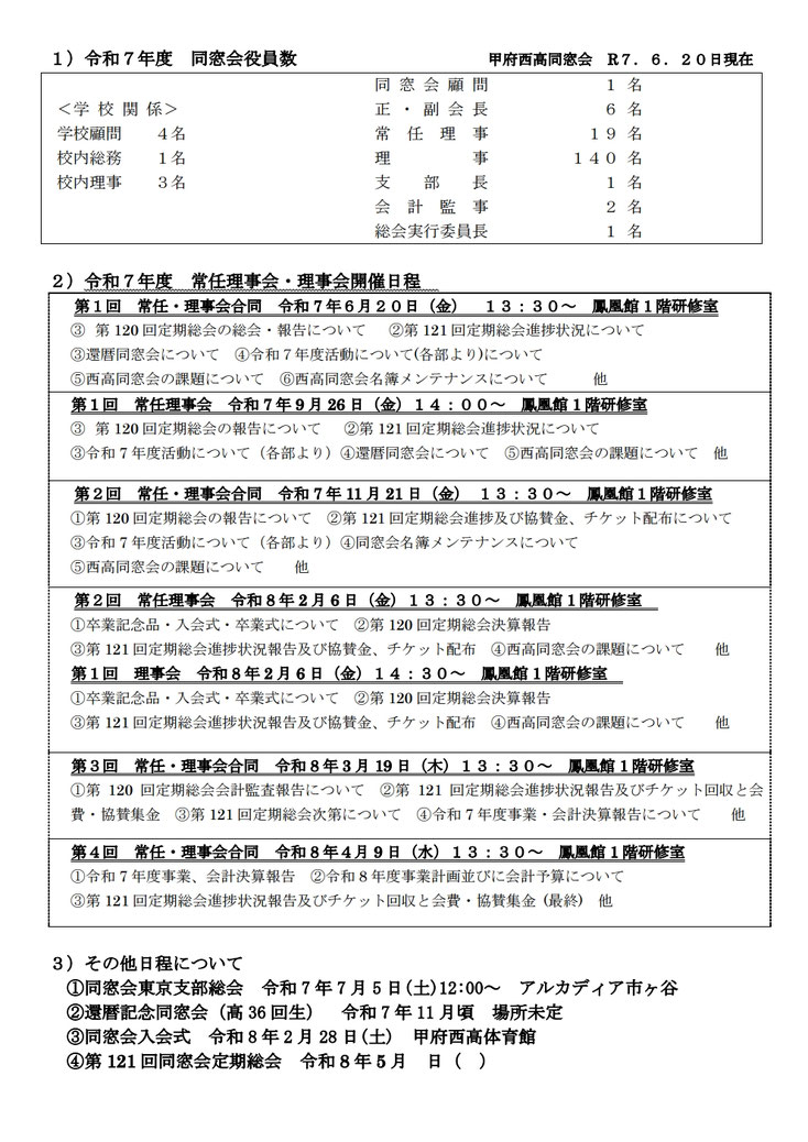 ◎同窓会顧問 2名 ○理 事 177名 学校顧問 2名