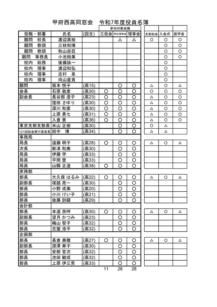 ◎正・副会長 6名 ○支 部 長 1名 校内総務 1名